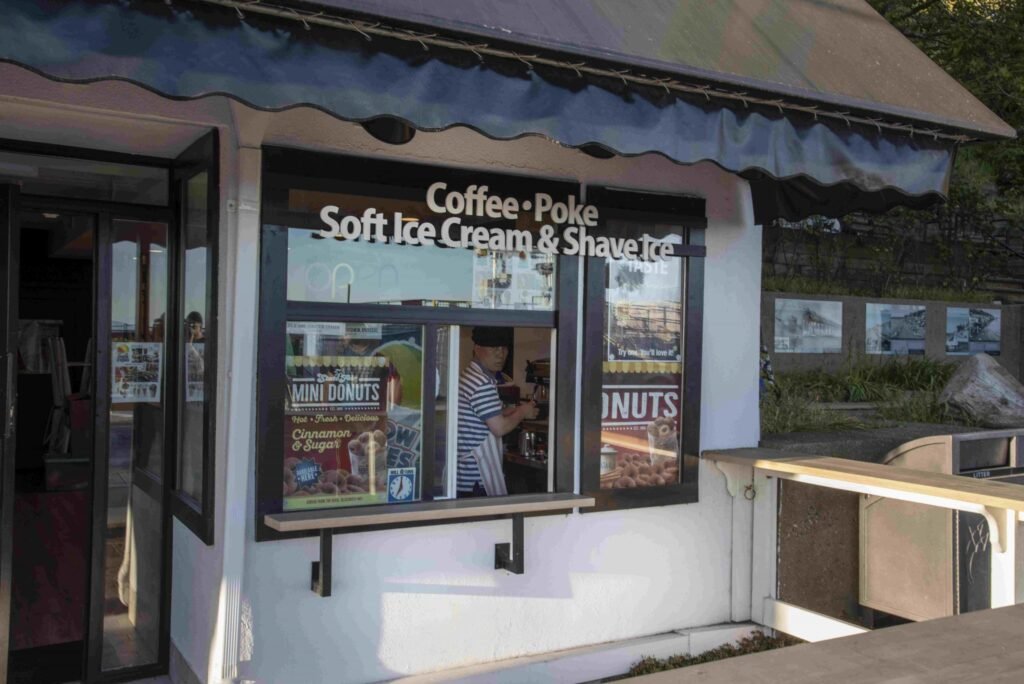 Aloha Beach Picnic: Another addition to the list of places that serves more than just ice cream, this place was charming with a white and driftwood aesthetic and full of options to choose from. Not only a choice between soft serve and regular ice cream, this place also offers poke, shave ice, mini donuts and much more. A cute little takeaway window and plenty of outdoor seating you can also take your ice cream and head straight to the beach, as they are right across from an access point. This was the most unique take on “ice cream in a cone,” as they placed small scoops of chocolate and vanilla ice cream in a takeaway bowl, then stuck the cone in.